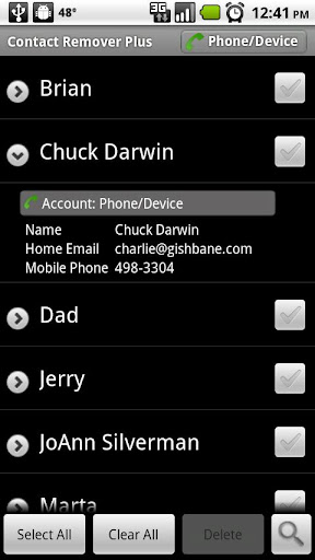 * Delete contacts one at a time or in huge batches