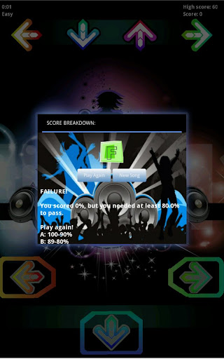 Start by first choosing a difficulty level. Next, choose a song, or upload one of your own MP3s. Once the game begins, tap the arrows at the bottom of the screen to the beat, as would in tap tap revenge, stepmania, or guitar hero.