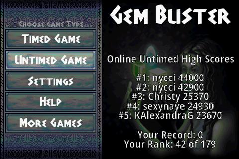 Stretch your brain with Gem Buster! Swap gems to create groups of three or more. You must to hunt for matches because you have to meet goals for each type of gem in order to move on to harder challenges. Online high scores keep you coming back for more!