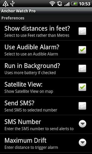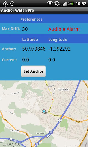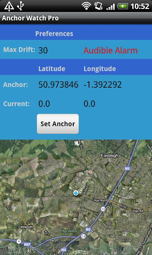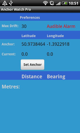 This App will allow you to fix your boats location and to set a maximum scope that you want the boat to drift before triggering an alarm. You can elect to run in silent mode with just a warning message appearing when the set scope it exceeded or you can elect to use the default alarm sound.