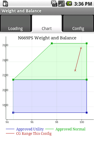 Written by a pilot, this app computes aircraft weight, balance, MAC (mean aerodynamic chord), center of gravity for arbitrary aircraft. Data including complex CG (center of gravity) envelopes, arbitrary CG stations and loading limits are entered and saved. Has been used to compute weight and balance for Columbia 400, Piper Meridian, King Air 100, Diamond DA-40, Cessna 172 and others. Supports multiple fuel tanks and variable fuel arms. Given loading info for a flight, the weight/balance range is shown on a chart. For an introductory video, see http://bit.ly/bCSxFy