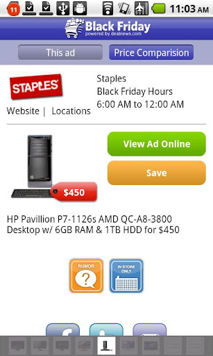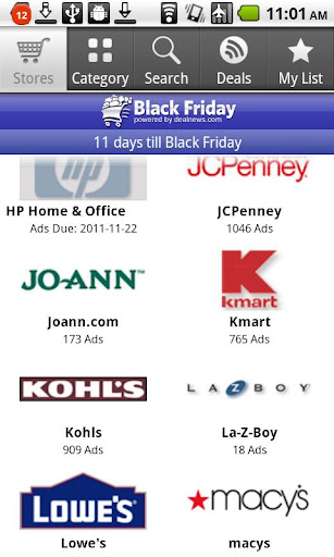 * Share Black Friday ads and deals via Twitter, Facebook, and Email