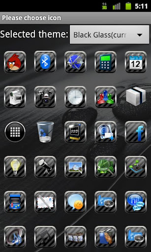 Key Words: GO Launcher EX Theme glossy glassy black theme shiny icons glass gloss clean chrome dark