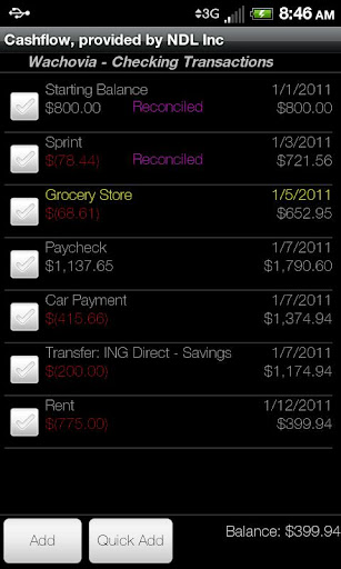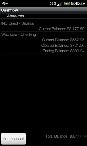 Cashflow is an easy to use basic checkbook register. Using this application as a personal account ledger will allow users to track running, ending, and current balances for multiple accounts. This is a very useful tool for users that wish to project their cash flow by entering future transactions into their register.
