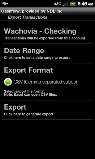 Cahsflow also offers users the ability to backup their data to a SD card, as well as the ability to email that file off of the device for safekeeping should the phone be lost, damaged, or reset.