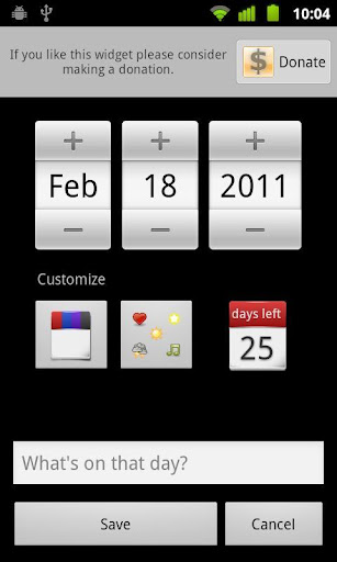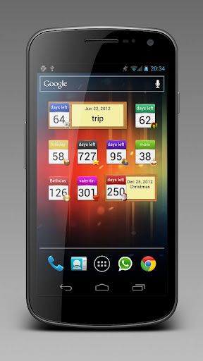 | Appname: Days Left Widget Pro Developer: leihwelt.com Price: Size: 1,1M | Version: 1.5 min. Android Version: 2.1 oder höher Category: Lifestyle Download: Please scroll down |