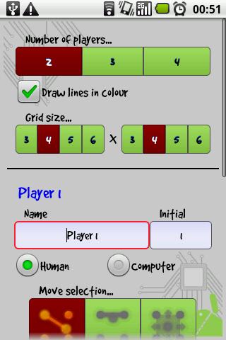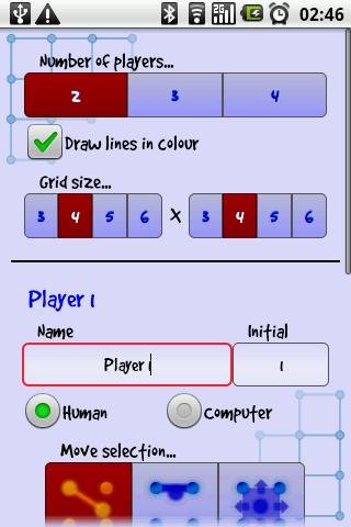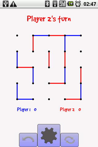 The classic game of Dots and Boxes... now for your phone! Connect the dots up in order to complete squares. The player with the most completed squares at the end wins. Now featuring Bluetooth Mode... play dots and boxes against a friend over Bluetooth!