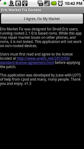 Eris Market Fix was designed for Droid Eris users, running rooted 2.1 Eris based roms (Ivan's/Senseable/etc). While this app may repair market issues on other phones, and roms, it has not been tested.
