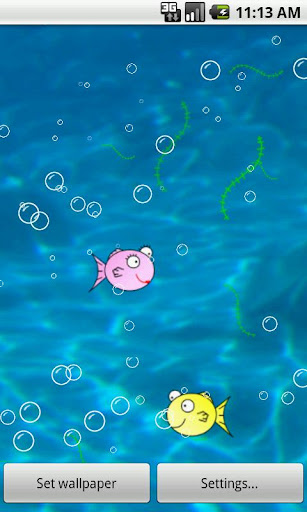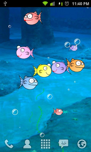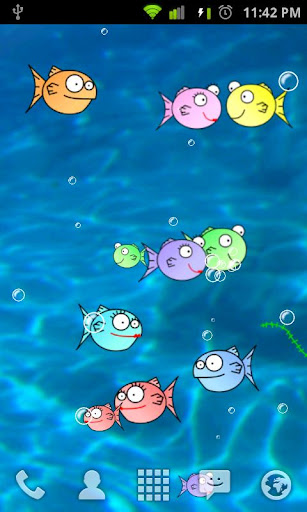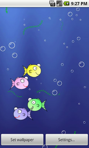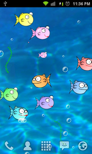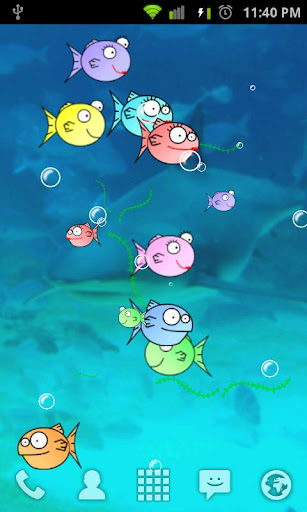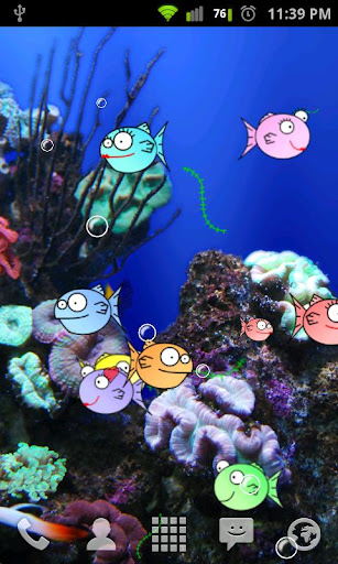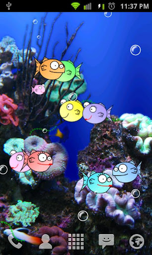 Fun cartoon aquarium live wallpaper with cute fish that love to interact with you.