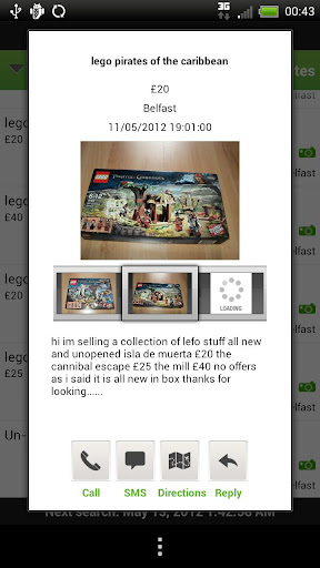- Quick Fire Actions (Call, SMS, Directions, Reply via gumtree)