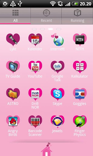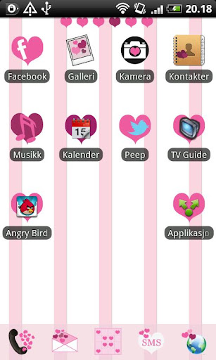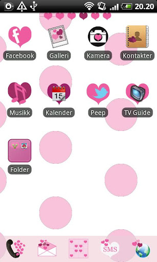 A super cute hearts theme for GO Launcher EX, includes many custom icons, dock bar background, 3 cute wallpapers and folder++.