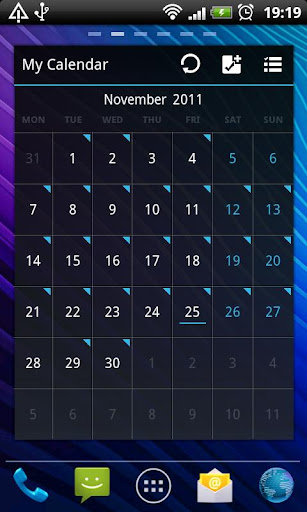 This theme supports the Message (3D!), Email, Calendar, Default Search, Search, Contact, Bookmark, Switch, Facebook, Store, Note, Twitter and TaskManager widget.
