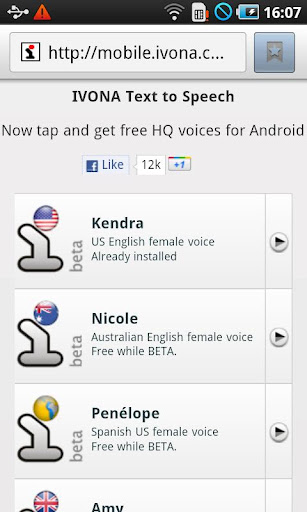 IVONA Kendra will read aloud on your Android: