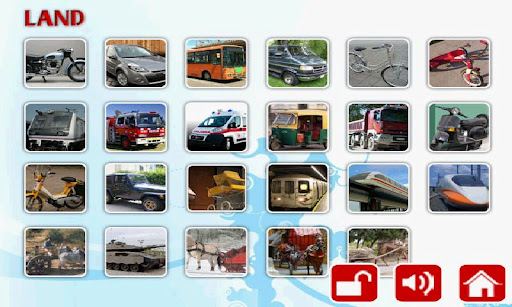 App is develop to provide basic knowledge of land , air, water vehicles to your kids.