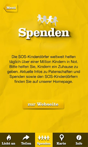 | Appname: Licht an! Developer: SOS-Kinderdörfer weltweit Price: Size: 11M | Version: 1.1.1 min. Android Version: 2.1 oder höher Category: Lifestyle Download: Please scroll down |