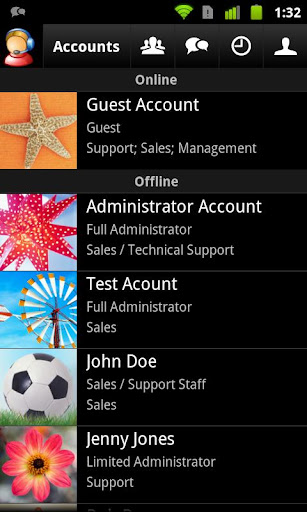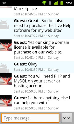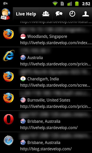 You are able to see who is currently browsing your web site and accept incoming chat requests from your web site visitors right on your Android device. Live Help also allows you to view chat history and manage operator accounts.