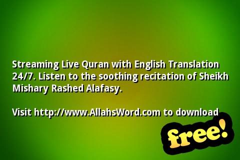Streaming Live Quran with English Translation 24/7. Listen to the soothing recitation of Sheikh Mishary Rashed Alafasy.