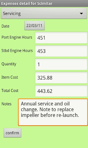 Log running costs such as fuel, marina fees, licence fees, servicing etc.