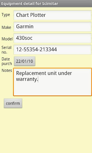 Store information about any auxiliary equipment that you may have fitted, radios, radar etc with serial numbers etc.