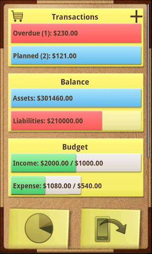 Manage your personal finances in the most comprehensive manner with Money for Android devices. Track different accounts (wallets), record your transactions, budget your income and expenses, and keep full control of your personal finances.