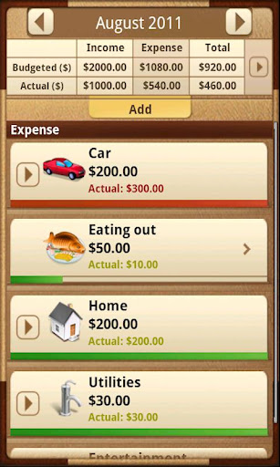 Expense categories expand to fit your needs