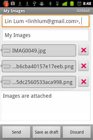 2c Click "Send" to resize all images, save the new resized images to the output directory and send some of the selected images using email, SMS message etc.