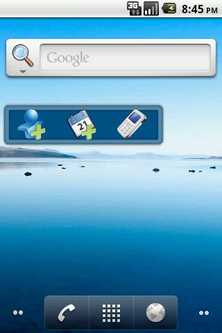 Homepage widget for quick access to add contacts, add events and make a call