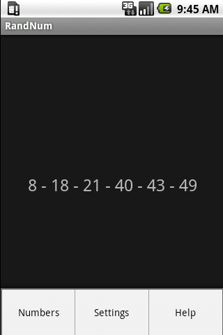 | Appname: Random Numbers Developer: Nestor Urquiza Price: Size: 117k | Version: 1.6 min. Android Version: 1.5 oder höher Category: Gelegenheitsspiele Download: Please scroll down |