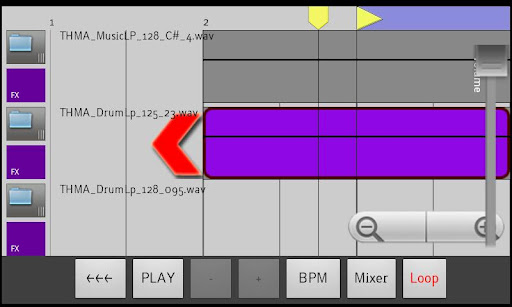 - TOUCH UND ziehen Sie nach rechts ab einer Track-Nummer, um es Probe zur Timeline hinzuzufügen