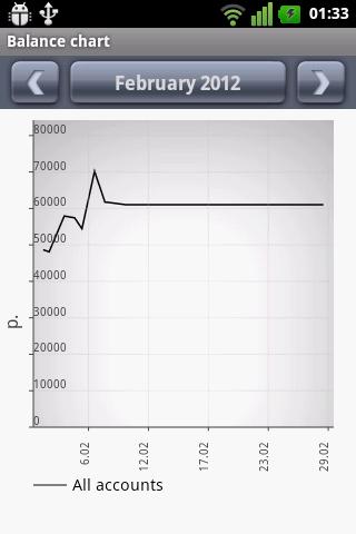 - Widget display total balance, balance of selected account and the button to add the operation.