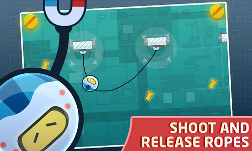 Gameplay couldn’t be simpler: shoot, release and cut the rope while you swing our little droid hero like a spider man.