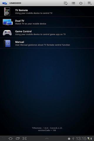 This application is Wi-Fi remote control for Samsung Smart TV. If both your tablet PC and TV are connected to the same wireless Router, your tablet PC will link to the TV automatically where you can use your tablet PC like a remote control. The TV can also transfer live feeds to your tablet PC.