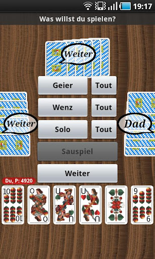 Sauspiel, Solo, Wenz, Geier, Farbwenz, Farbgeier, Bettel (frei einstellbar)