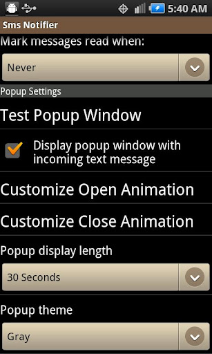 Use SMS Notifier to customize when to display the message in the notification bar. Why spend time marking a message read if you've already seen it? SMS Notifier provides a setting for controlling when to mark a message read.