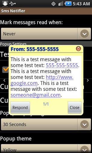 Don't like the way your current text messaging app handles its notifications? Sms Notifier has options for ringtone, vibrate mode, notification bar customization, popup window with animations and themes.
