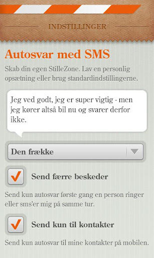 • StilleZone er også oplagt at bruge som auto reply app i andre situationer, hvor man er utilgængelig.