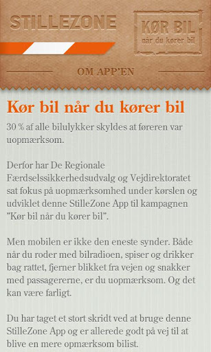 Du tager et stort skridt ved at bruge denne StilleZone App og vil dermed være godt på vej til at blive en mere opmærksom bilist.