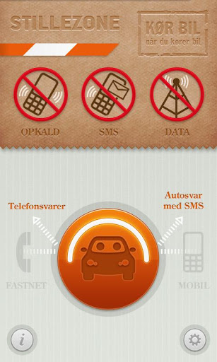 • At skabe en StilleZone – et frirum i bilen, hvor mobilen ikke forstyrrer din kørsel, og hvor alle som forsøger at kontakte dig imens du kører, får besked om, hvorfor du ikke tager din telefon eller skriver tilbage.