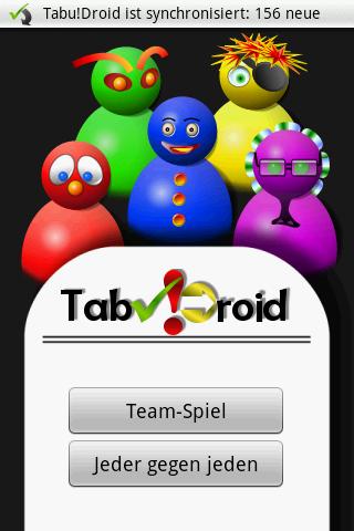 Tabu!Droid greift auf eine Online-Datenbank zu und muss vor dem ersten Spiel einmal synchronisiert werden. Es werden laufend neue Karten hinzugefügt, die von Tabu!Droid ohne App-Update heruntergeladen werden.