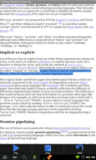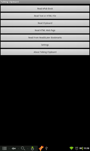 Talking Clipboard for Android is a text to speech application for Android 2.2 and higher, that can read ePub Books or any text or html files. It can also read text copied from any application, using Talking Clipboard: Read Clipboard feature available through the notification/status bar. You can also open Read It Later saved bookmarks and can read it in Talking Clipboard. Talking Clipboard can also convert any webpage article to text and can read it for you.