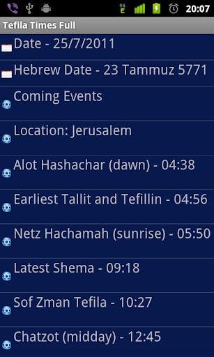 This app represent the Daily halachic times (Times for tallit, tefillin, shema, and more).