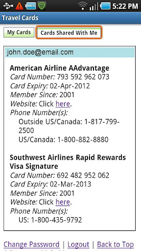Travel Cards for Android puts your loyalty programs on your phone, and at your finger tips. As an elite traveler earn and use your rewards, and reduce the clutter and hassle of plastic cards or stored notes. Don’t lose out on rewards because you can’t find your cards, numbers, or mix match of expire dates and types of membership programs. Not to mention, what would happen if you lost your phone – yikes!