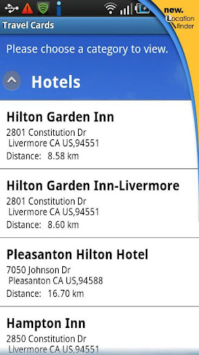 NEW FEATURE: Exclusively on Travel Cards Elite. The Location Finder which uses the phone's GPS functionality. You can now find hotels, restaurants, stores, car rentals, groceries, businesses, and health care facilities that use your rewards cards from your location (US & Canada only). If you're in a new area and need to find a hotel but want to use your loyalty cards to earn your points, use the Location Finder and you'll get the list of hotels within your immediate area.