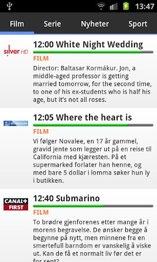 - Oversikt over dagens filmer, serier, underholdning og sport på TV.