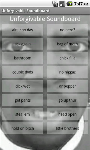| Appname: Unforgivable Soundboard Developer: ThorntonX Price: For free at our blog! Size: 1,6M | Version: 1.0 min. Android Version: 2.1 oder höher Category: Unterhaltung Download: Please scroll down |