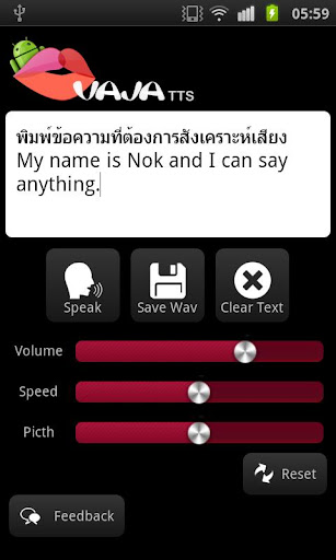 Thank you for trying a beta version of VAJA Thai speech synthesizer on Android. After a 3-month trial period, we are expecting to launch a full version of VAJA Android very soon.
