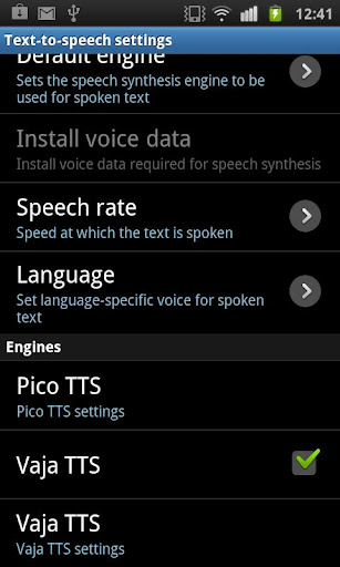 | Appname: VAJA Text-to-Speech Engine Developer: KAPONG Price: For free at our blog! Size: 2,6M | Version: 1.2.1 min. Android Version: 2.2 oder höher Category: Software & Demos Download: Please scroll down |