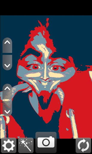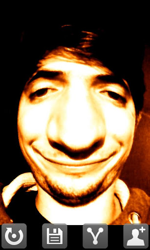 Distort your faces in real time! Change through different warping and color effects! You can see how the result will look like BEFORE you shoot the photo.