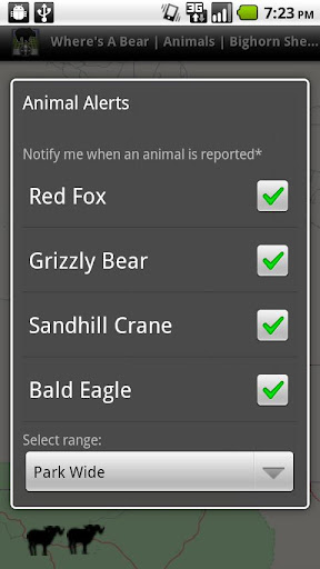Reporting animals works ANYWHERE in Yellowstone National Park! No cell network necessary. Your sightings are saved and uploaded as soon as a cell network becomes available.