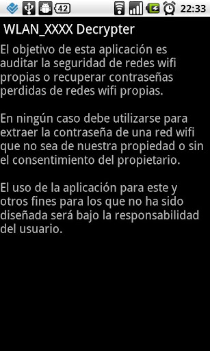 El objetivo de esta aplicación es auditar la seguridad de redes wifi propias o recuperar contraseñas perdidas de redes wifi propias.